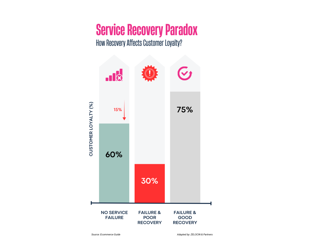 ZELOCIN Insight: Brands that consistently communicate and resolve issues using standardized recovery practices see up to 38% higher customer retention and 2x greater likelihood of positive word-of-mouth. When customers know what to expect, even during failure, they stay loyal, spend more, and become advocates for your brand.